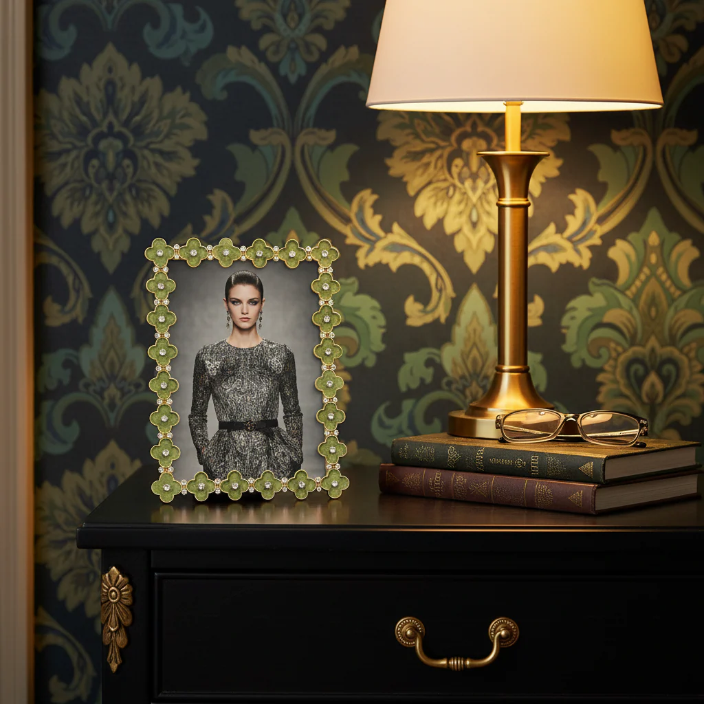 Green Gold Celadon Enamel Clover Frame 5″ X 7″